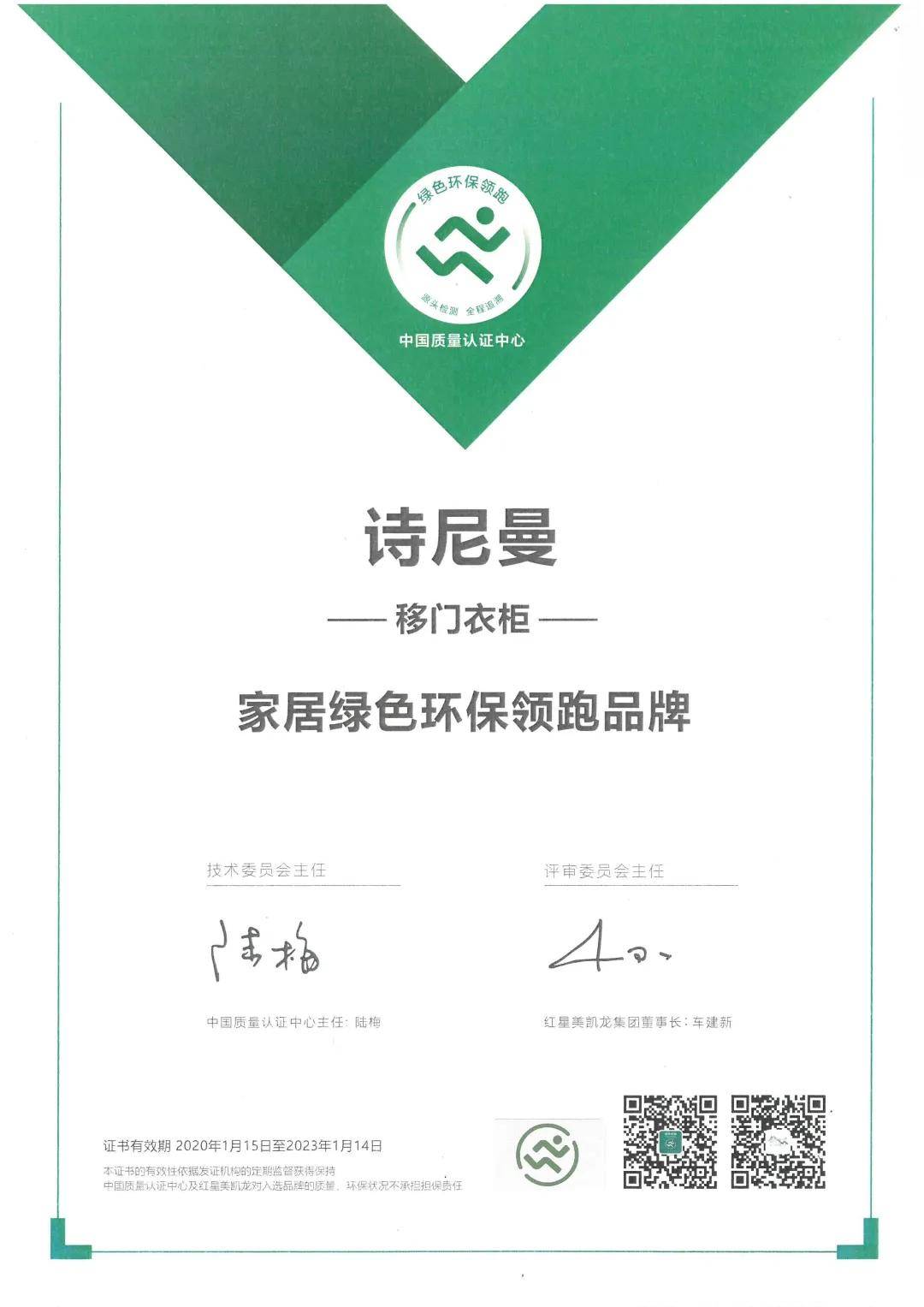 绿色环保的不断升级,同样也需要科技在背后的驱动。诗尼曼在绿色环保领域,坚持了17年。今年9月,在红星美凯龙联合中国质量认证中心举办的中国家居绿色环保领跑品牌年度榜单颁奖典礼上,诗尼曼荣获“家居绿色环保领跑品牌”并被授予荣誉证书。