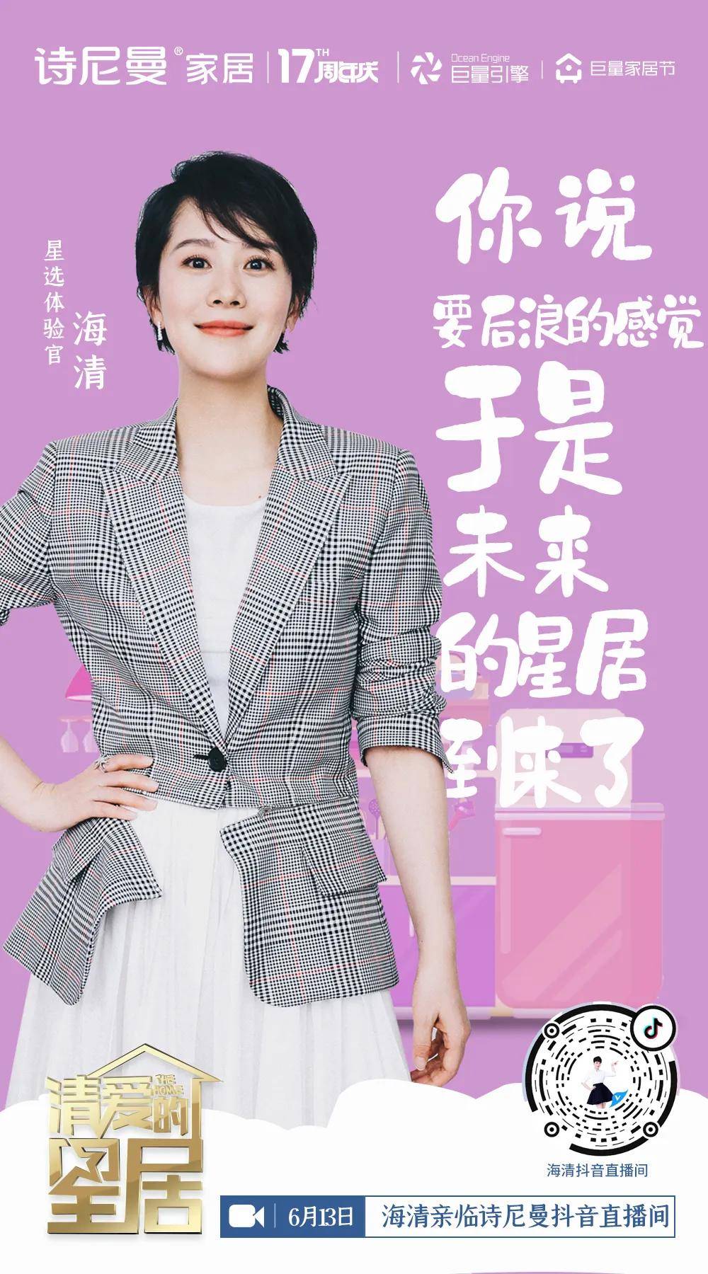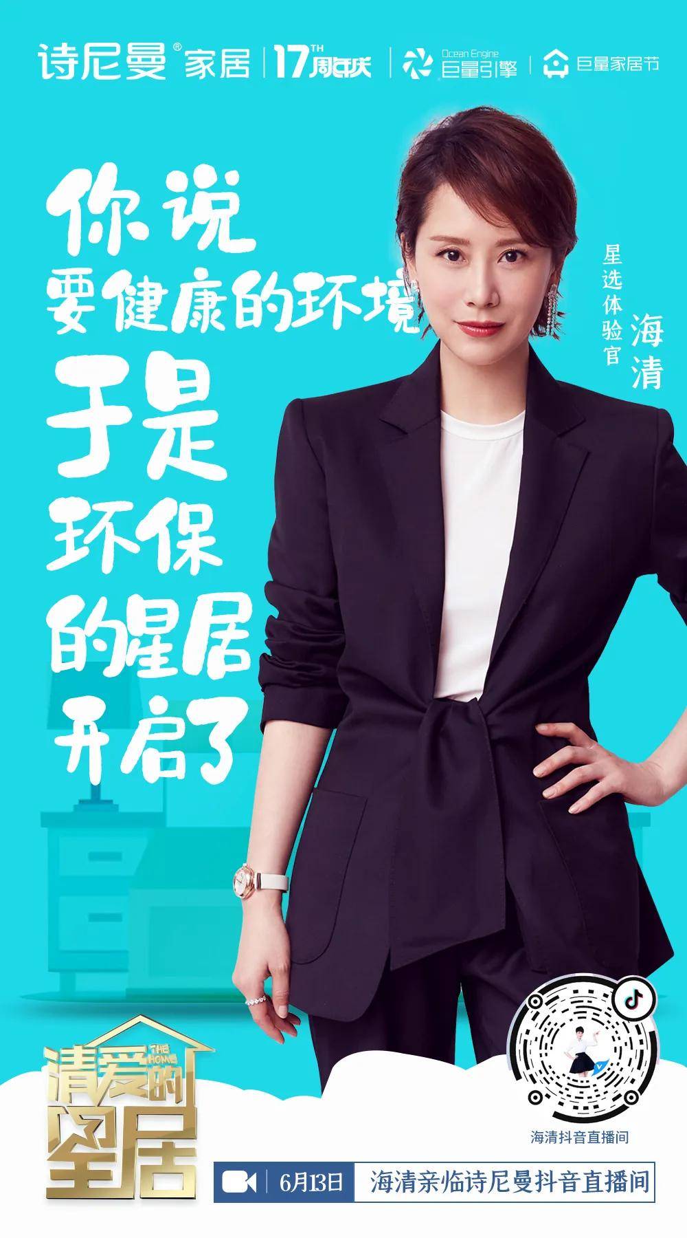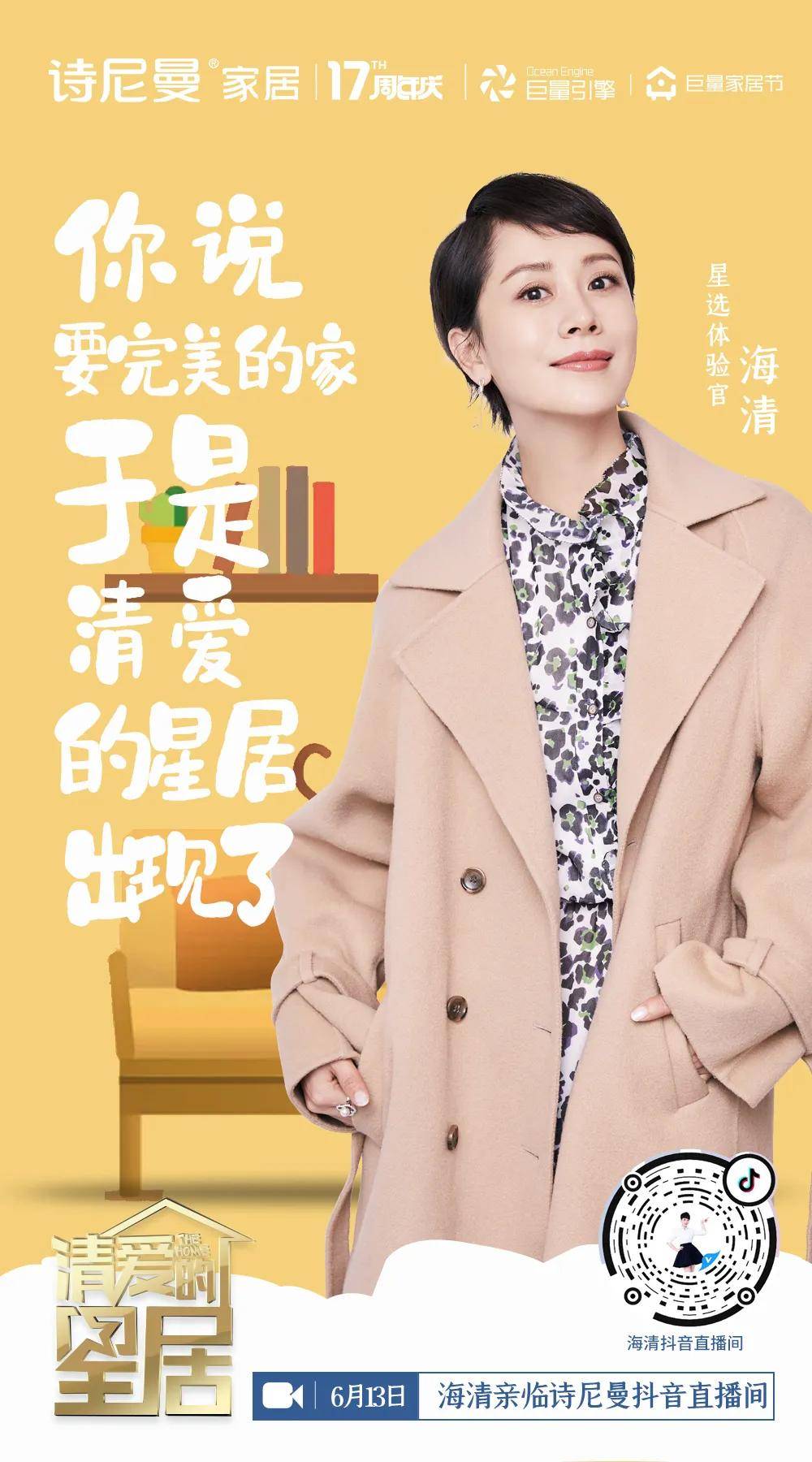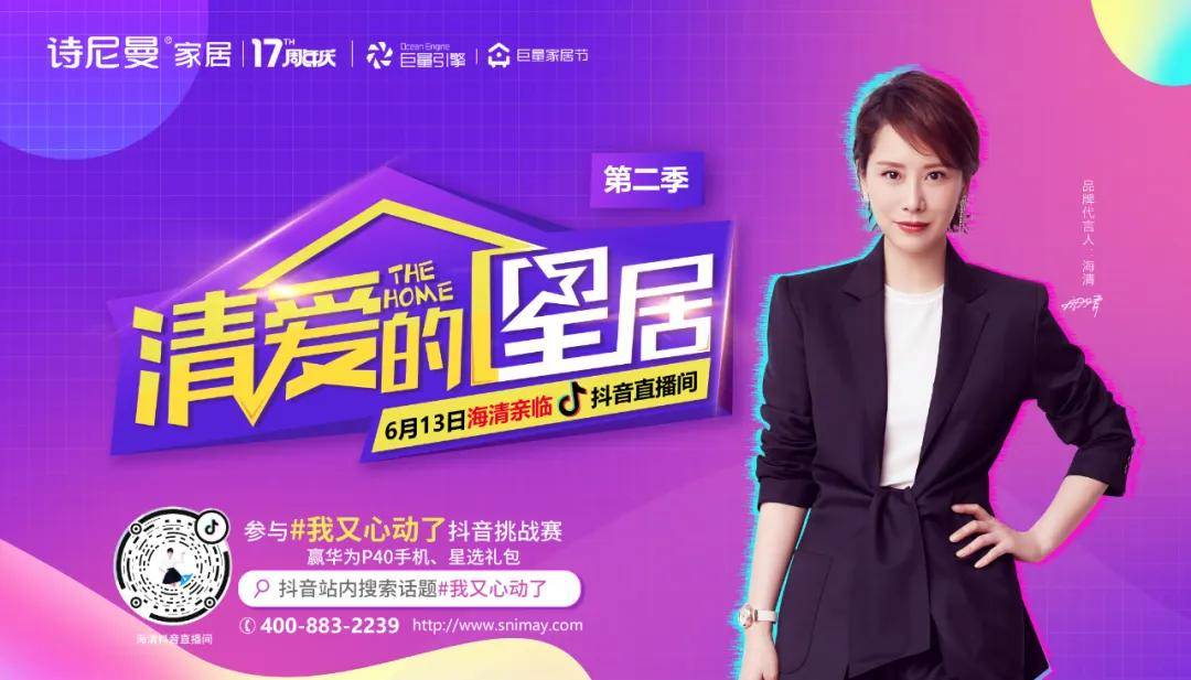 这一次,在即将到来的17周年庆,诗尼曼玩的,是与字节跳动旗下公司巨量引擎联手,启动代言人海清的直播秀!