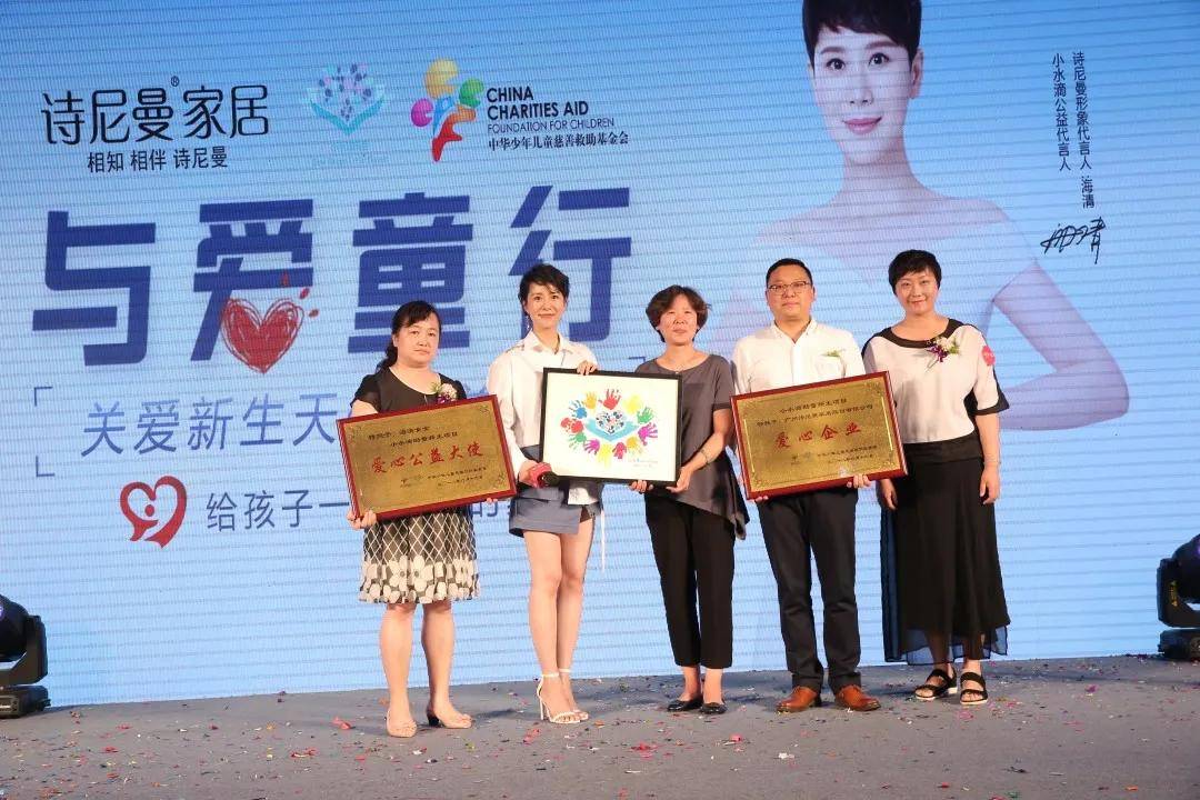 2018年,诗尼曼携手中华儿慈会、小水滴、海清共同启动了“与爱童行”关爱新生天使公益计划,在每一个重大活动场合,不遗余力为小水滴孤残儿童发声,并在全国1200+门店设立小水滴公益角,集结全国经销商的力量,为小水滴儿童提供最切实的援助。